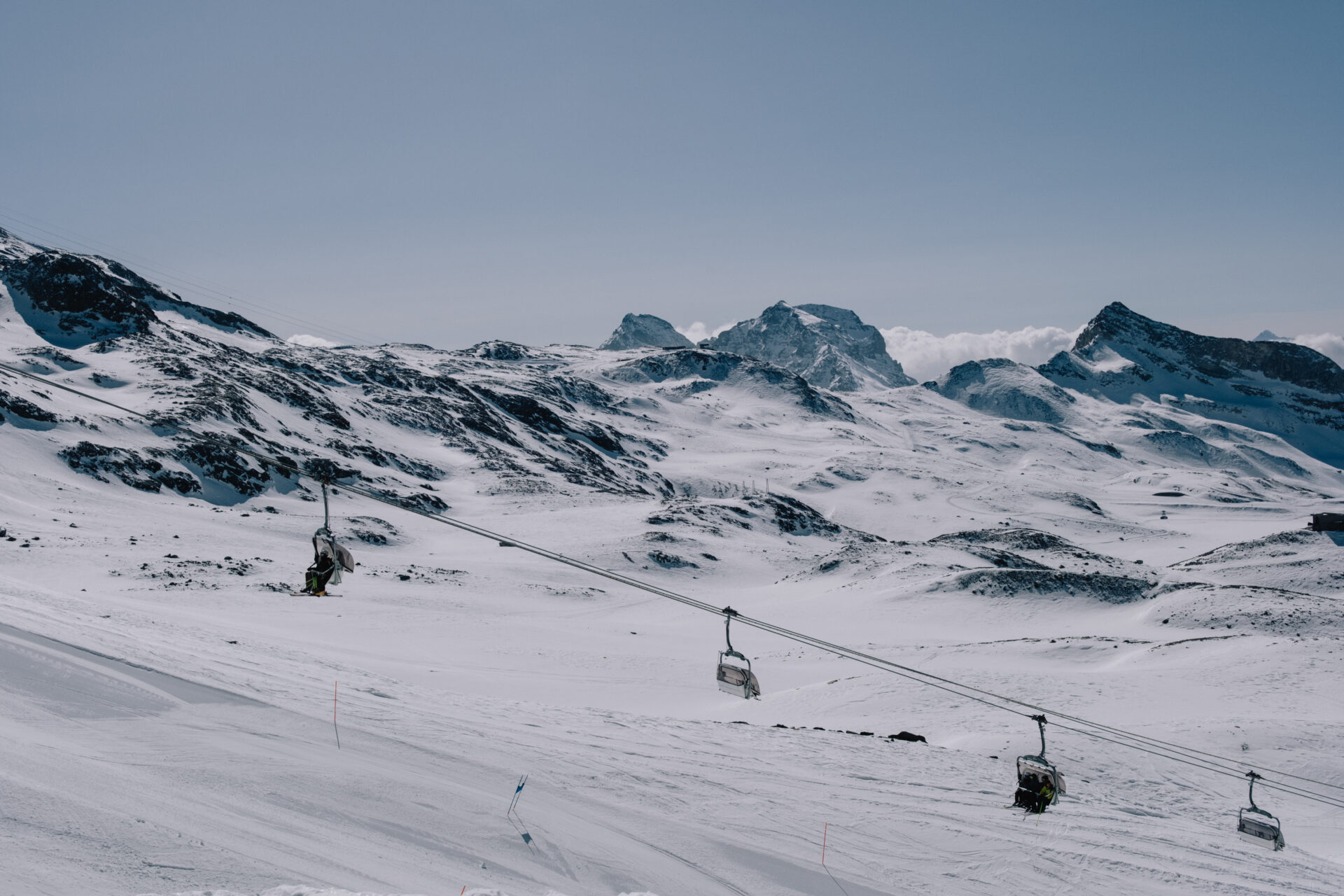 Et puis, il y a le Cervin. Impossible de passer à côté de cette montagne iconique qui domine le paysage. Sa forme triangulaire parfaite est d’ailleurs celle qui a inspiré le célèbre chocolat Toblerone. On le voit apparaître au détour d’une piste, se dévoiler au sommet d’une remontée, puis disparaître derrière les reliefs… pour mieux réapparaître plus loin.